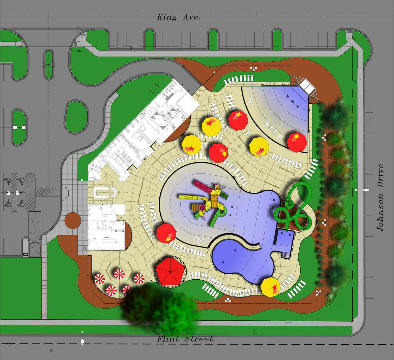 City of Shawnee - Splash Cove: Jim Allen Aquatic Center - Site Plan ©YDG, AutoCAD plan rendered in Photoshop |